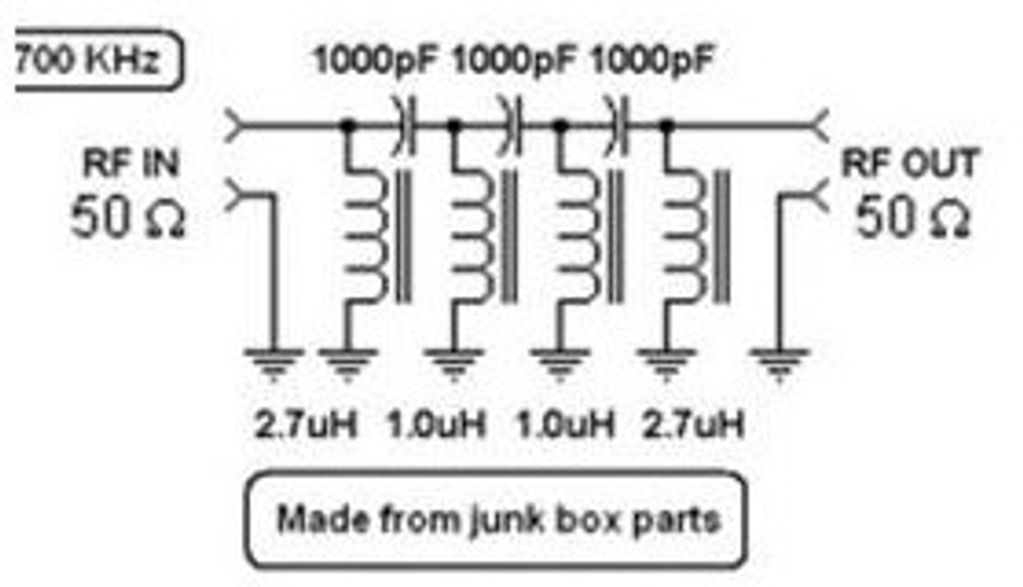 Schematic for a 2.6 Mhz high pass filter by David Forsman WA7JHZ of Lewiston, ID.